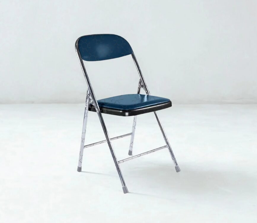 Model ini menggunakan rangka baja finishing tahan karat dengan sistem lipat praktis tinggi total sekitar 80 sampai 85 cm tinggi duduk sekitar 45 cm lebar dudukan sekitar 38 sampai 40 cm struktur kokoh ringan mudah dipindahkan dan cocok untuk penggunaan indoor maupun outdoor ringan